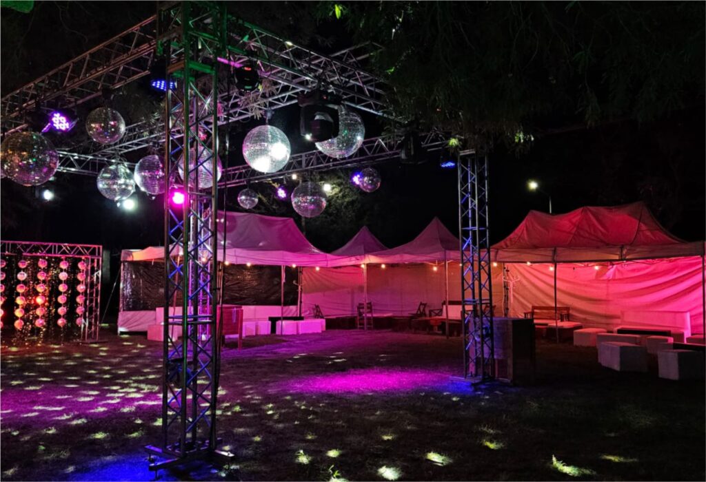 Creamos experiencias únicas con estructuras, mobiliario, iluminación y sonido profesional.