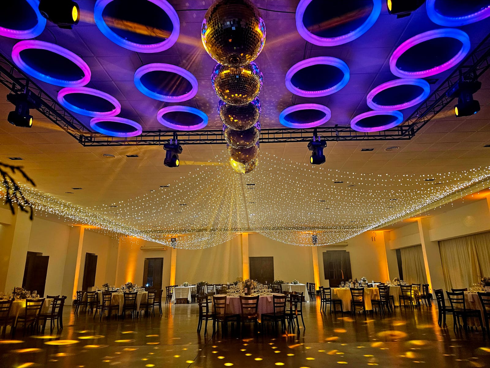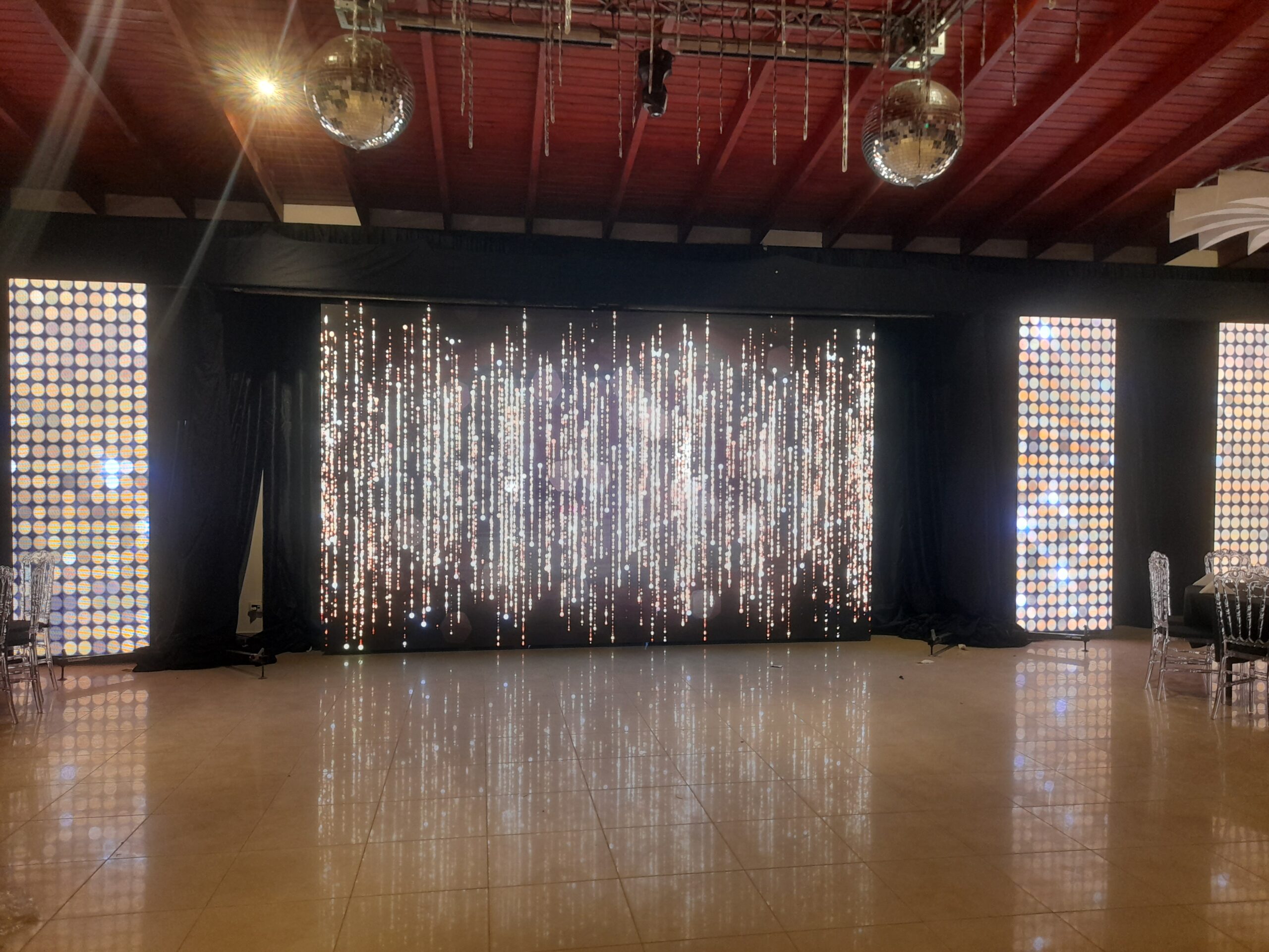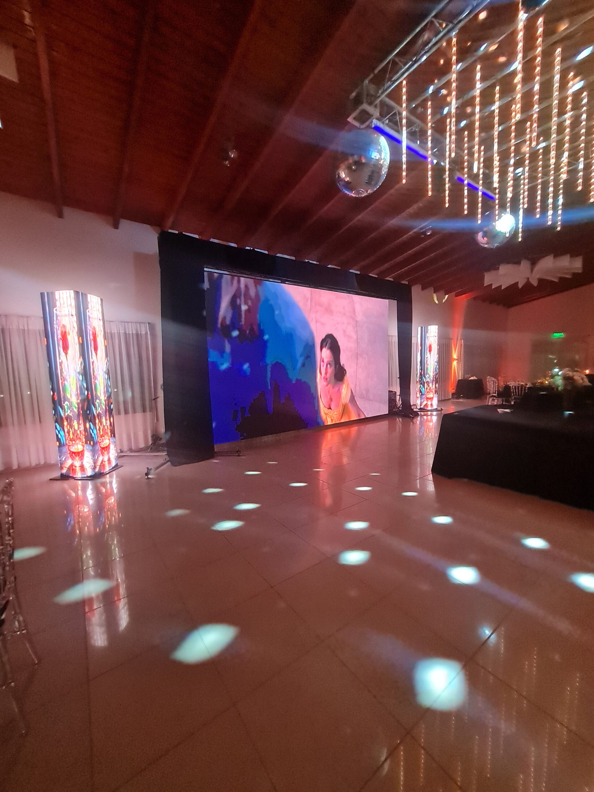 Ofrecemos sonido envolvente, iluminación profesional, pantallas LED, techos LED, pistas LED y cabina DJ. Tecnología de última generación para transformar tu evento en una experiencia visual y sonora de alto impacto.