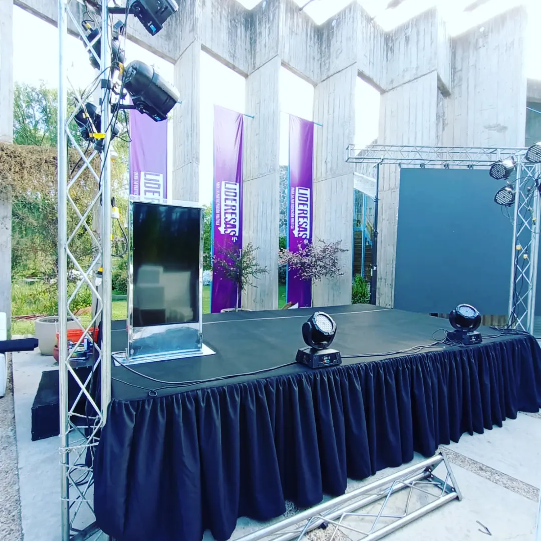 Ofrecemos soluciones integrales: técnica, estructuras, módulos y mobiliario. Todo lo necesario para armar tu evento en un solo lugar, con logística propia y atención personalizada para garantizar el mejor resultado.