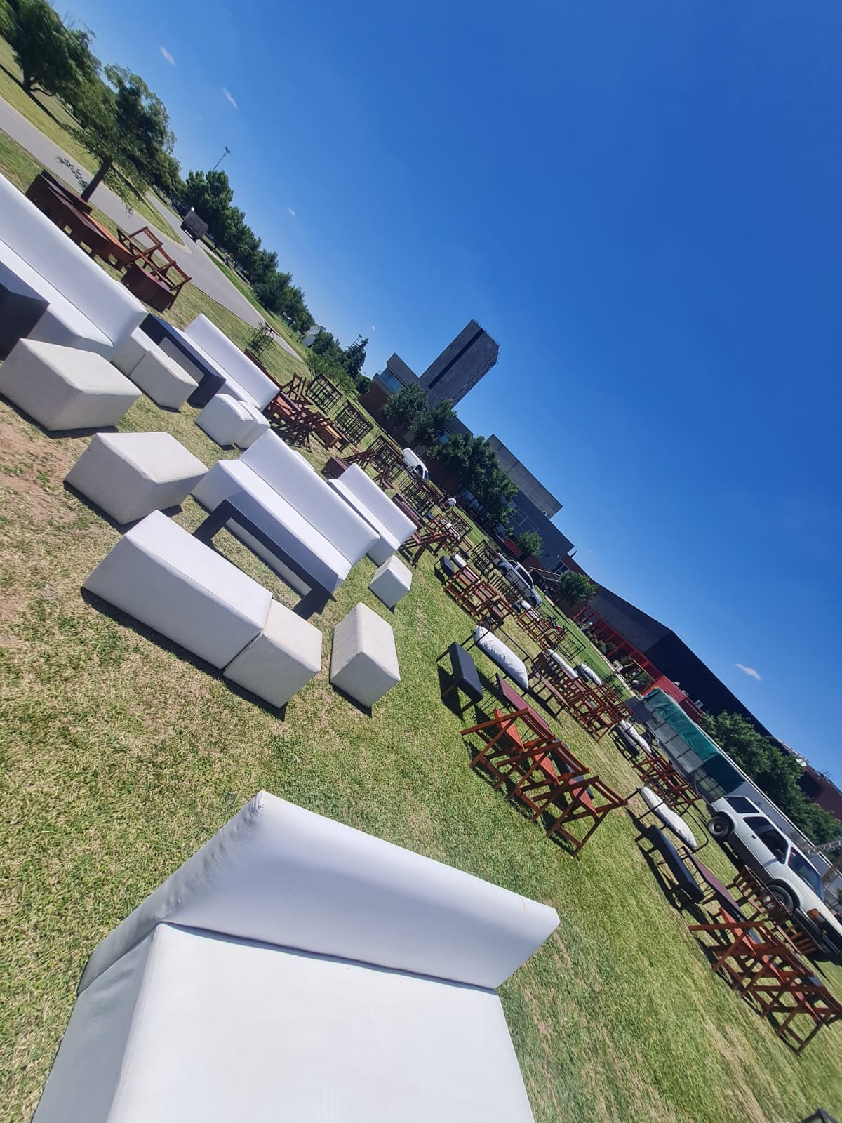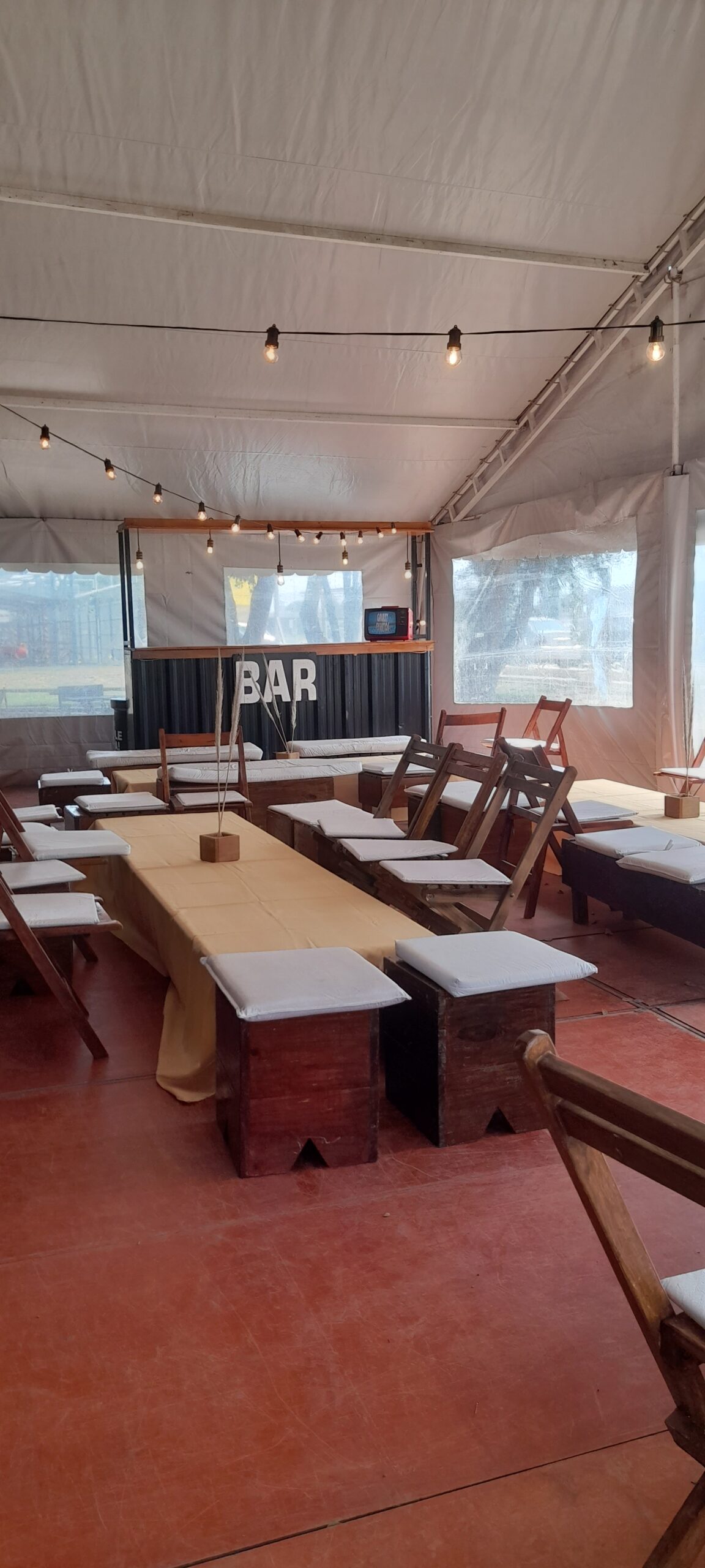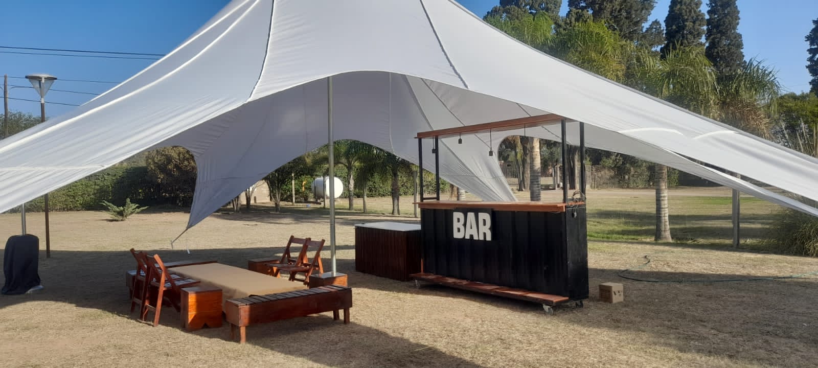 Disponemos de livings, mesas altas, banquetas, barras de tragos, enfriadores y climatización. Amplia variedad de carpas: estructurales, beduinas, estrellas y gazebos. Todo para ambientar tu evento con comodidad y estilo.